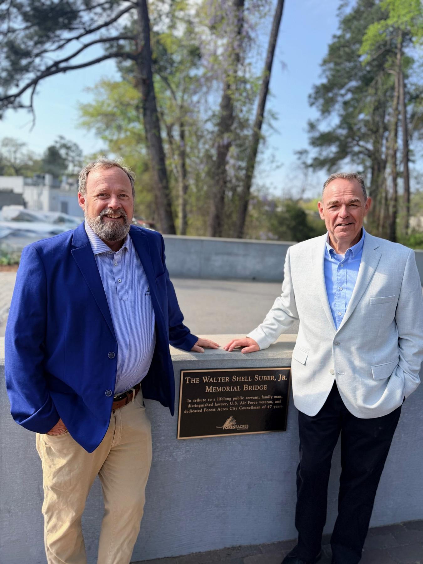 The City of Forest Acres proudly dedicated The Shell Suber Memorial Bridge today at Gills Creek Memorial Park, honoring the extraordinary life and service of Mr. Walter Shell Suber, Jr. The bridge, which was damaged during the unprecedented “thousand-year flood,” was rebuilt through $1 million in state funding secured with the support of Forest Acres State Representatives Beth Bernstein and Heather Bauer.